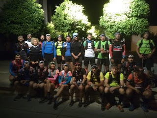 La senda se hace estrecha, vamos en fila de a uno, y en ese tramo siento por momentos el peso de la noche, me hallo cansado..., pero pronto toca entretenerse cuando en una parada aprovechamos para ponernos las polainas y las medias de compresión; dice el señor X, el organizador, que vendrán 4 kilómetros llenos de maleza, ¡y yo sin nada con que proteger mis piernas!. Suerte que estoy acostumbrado a las espigas y pinchos manchegos.